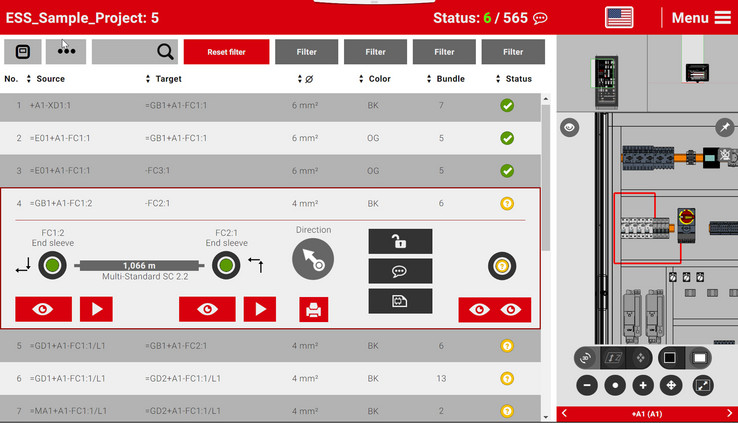 If two wires lead to one connecting point, wiring technicians usually work with a dual sleeve, and these connecting points now must be clearly identified in the system. Version 2.8 makes this child’s play with the new colour markings for daisy chains. And there’s yet another decisive practical advantage: if the wiring specialist takes a look at the schematic, he can directly get to the relevant electrical documentation using a cross-page jump function. The appropriate schematic information has been newly integrated into EPLAN Smart Wiring, Version 2.8. Now the specialist no longer has to inquire about it, thereby ensuring quality according to the dual-control principle.